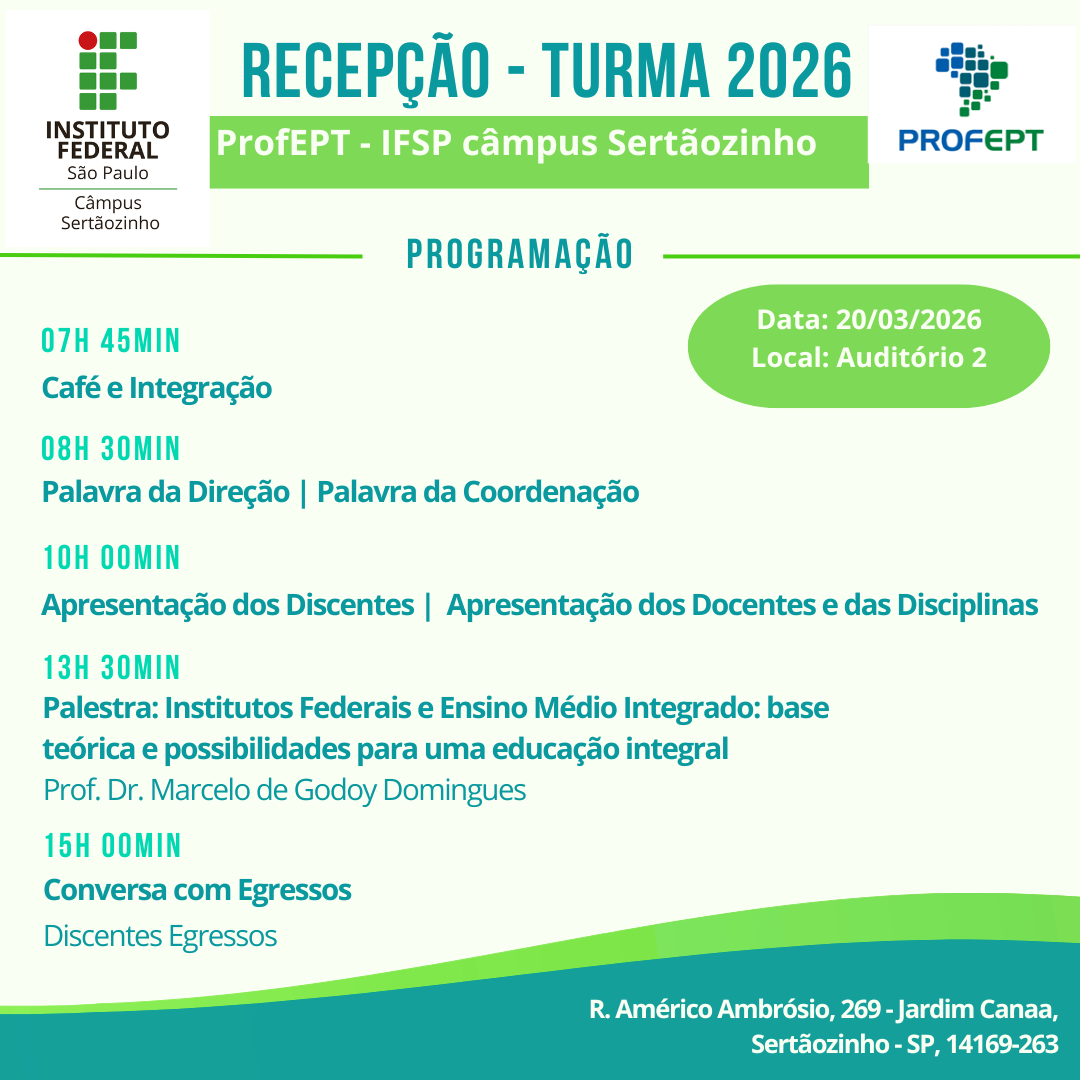 Programação Aula Inaugural - Turma 2026 (ProfEPT IFSP)